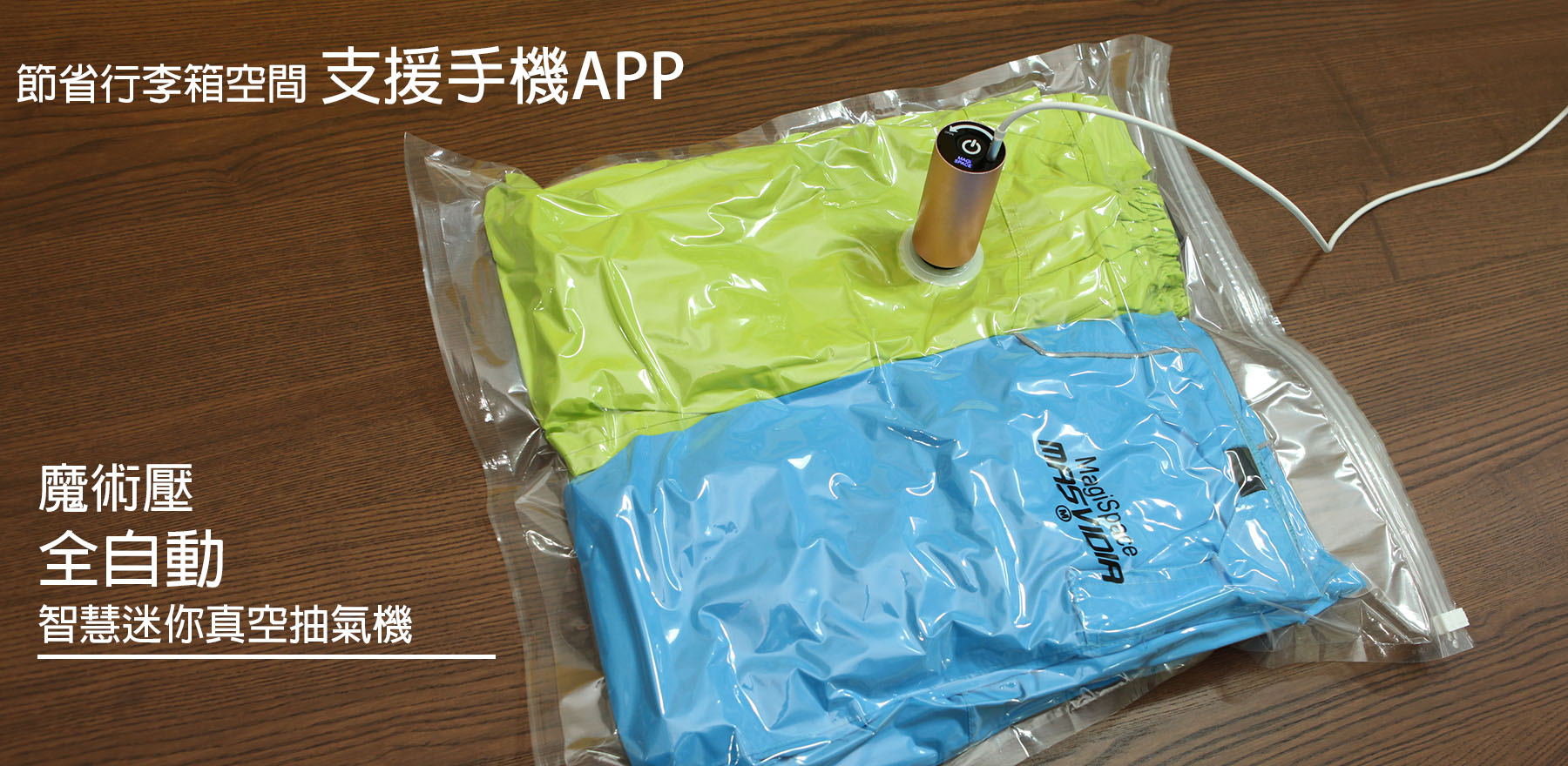 MasVidia 魔術壓 特價優惠中!專利設計/智慧迷你真空壓縮機/收納神器/可搭手機APP使用